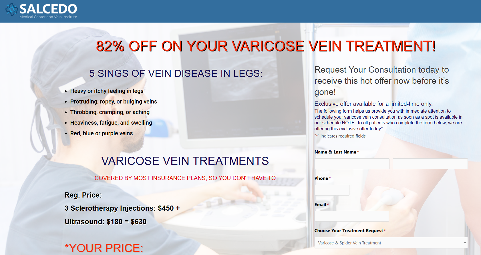 Challenge: Salcedo Medical Center & Vein Institute needed brand development, a new website, improved online visibility, and increased awareness as a vein specialist.